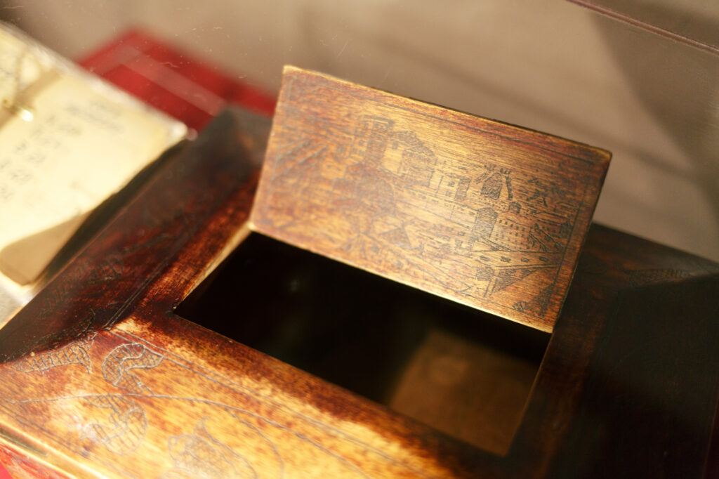 Цього місяця представляємо ще один цікавий експонат із фондів Національного музею-меморіалу «Тюрма на Лонцького» – скриньку дерев’яну ручної роботи, виготовлену Любомиром-Осипом Пеленським у концтаборі в Караганді 1954 року. Представлення цього предмета є даниною пам’яті одному з багатьох українських патріотів, на долю яких випали важкі випробування тюрмами і таборами окупантів. Саме у травні 23 роки тому Л. Пеленського не стало. Скриньку принесла до музею донька Л. Пеленського Богдана Фуртак (Пеленська). Їхня сім’я хотіла, щоб ця дорога для них сімейна пам’ятка зберігалася саме в цьому місці. Адже на початку 1950-х років Л.