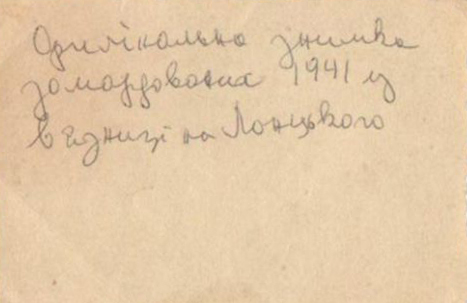 Фотографія зроблена на початку липня 1941 р. після відступу «перших совєтів», коли за рішенням нацистської окупаційної адміністрації жителі Львова отримали дозвіл відшукати та похоронити своїх замордованих НКВД родичів та близьких.