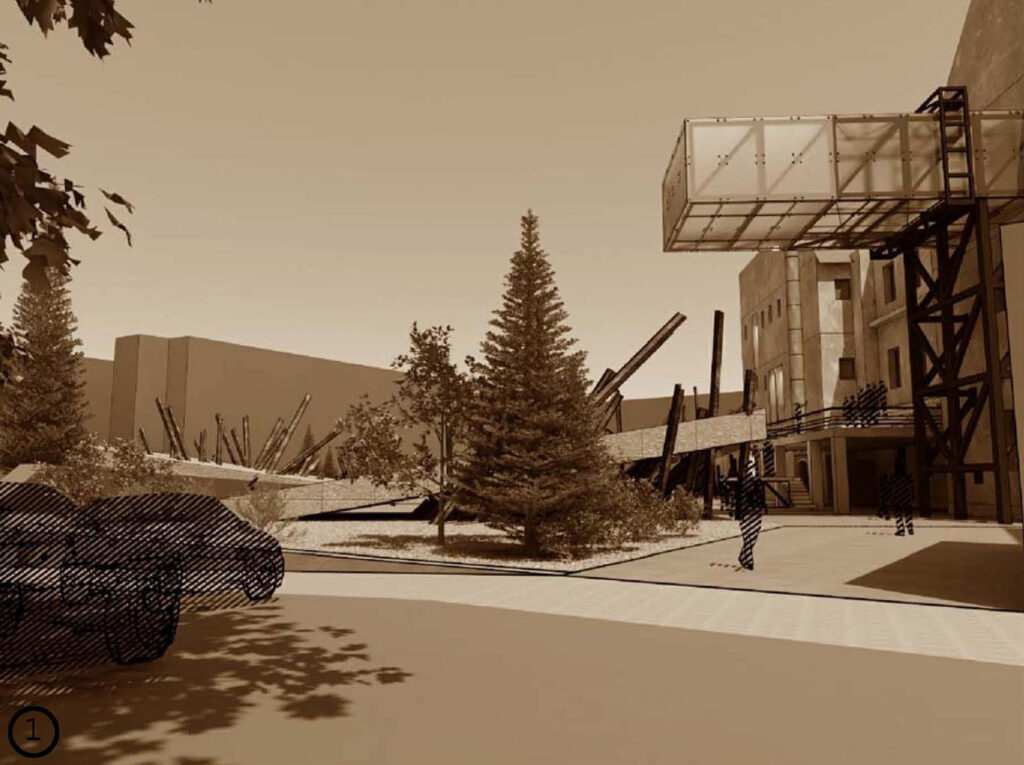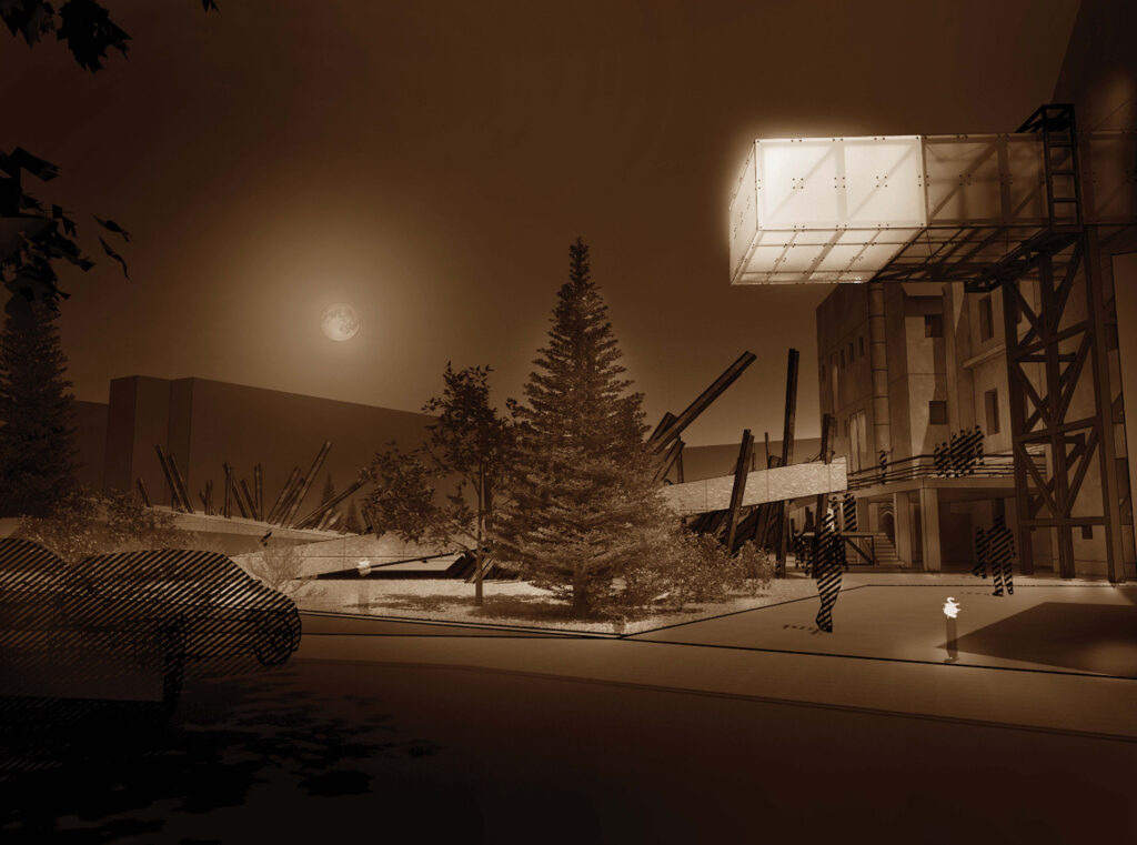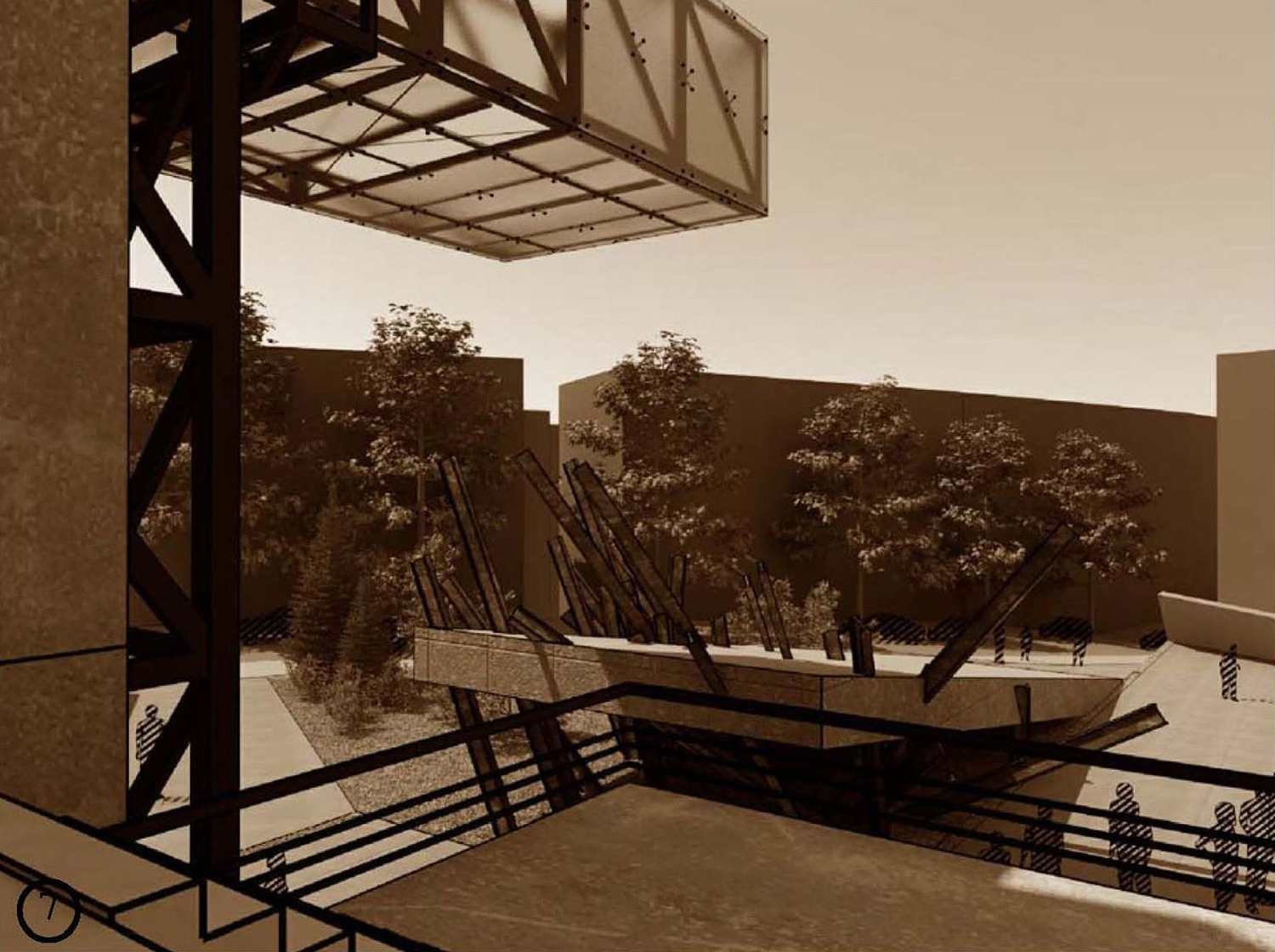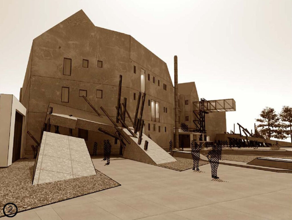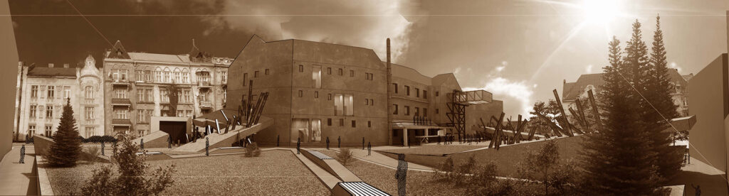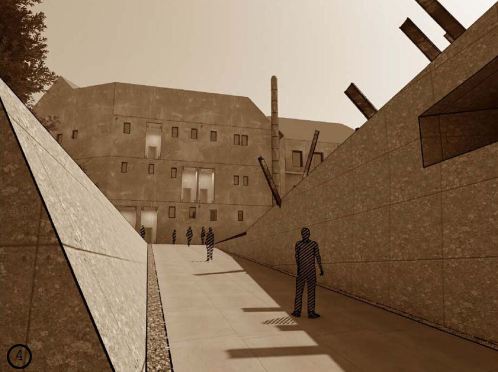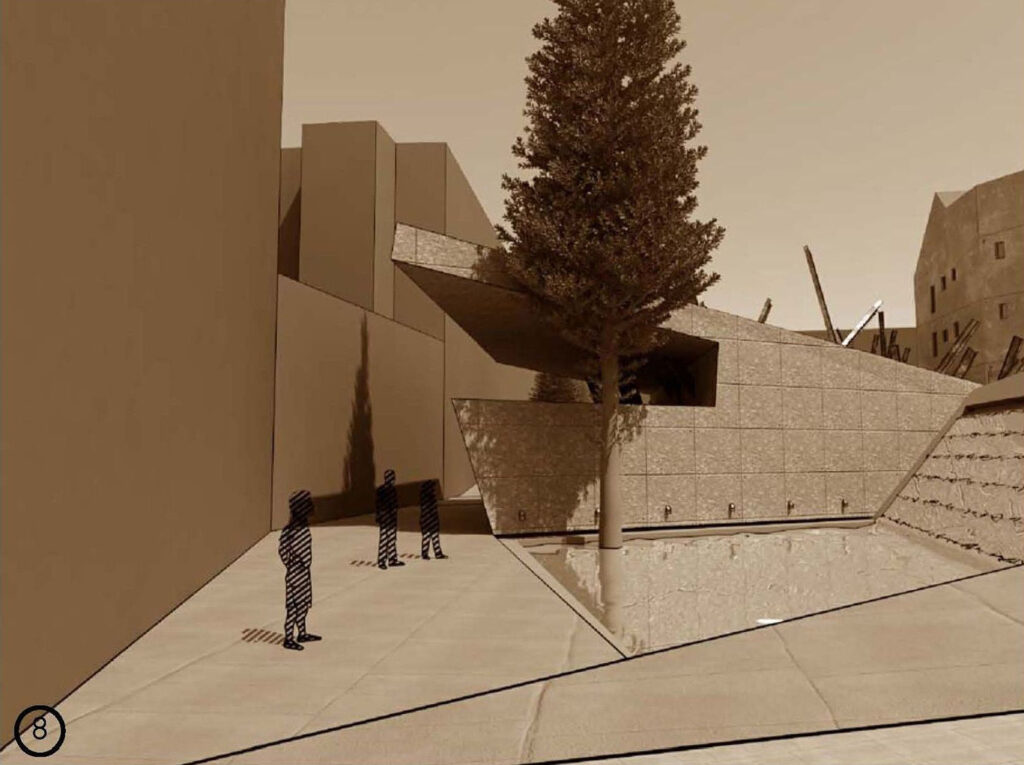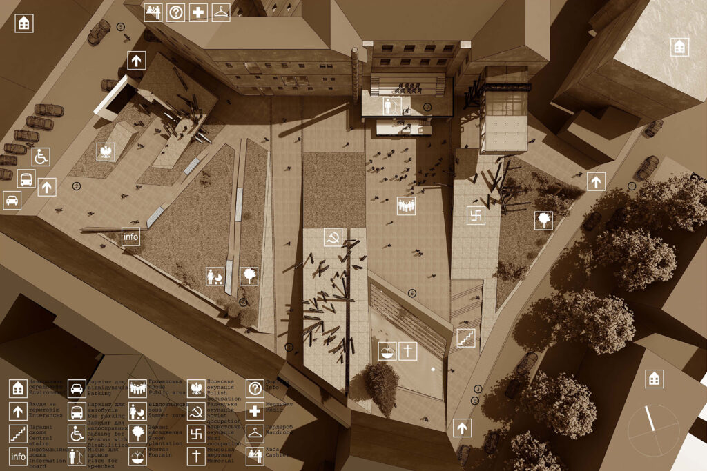 Відкривається новий пішохідний шлях що з’єднує вулиці Коперніка та Брюлова. Генплан території насичується трьома домінантами бетонними брилами які притискають металеві стержні до землі ламаючи їх що символізує репресивний тиск на націю та боротьбу людей проти цього (такий факт безпосередньо пов’язаний з даною територією) та фонтан що символізує увіковічення пам’яті поборених.