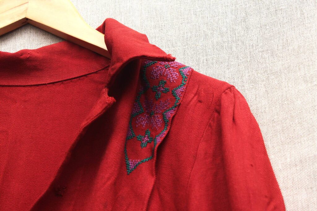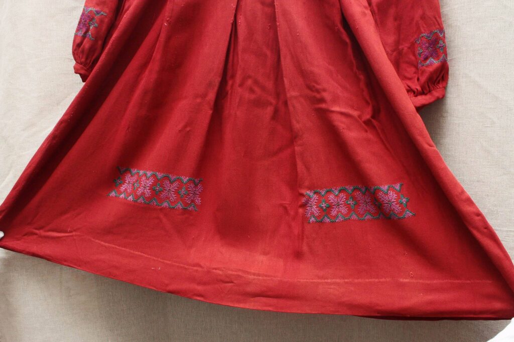 Історія цієї сім’ї до болю схожа на історії тисяч інших сімей, які зазнали переслідувань радянського режиму. Водночас вона є символом жаданої свободи, оновлення, незламності людського духу та жаги до життя. У ній матір Іванни Костишин – Євгенія Загоруйко – вийшла на волю після 5 років перебування в концтаборі. Для тоді ще молодої дівчини ця обновка була бажаною і спеціально готувалася для такої події. Час і обставини були скрутними: знайти хорошу тканину, нитки для вишивання було важко. Про це свідчать різні відтінки зеленого і фіолетового на рукавах та подолі. Однак, втіленню мрії дівчини вийти на волю у новому одязі, а не бридкій робі, допомагали усі табірні товаришки. Ця ситуація демонструє, що людське співпереживання, підтримка, взаємодопомога і відсутність заздрості можливі навіть у вкрай несприятливих умовах приниження людської гідності.