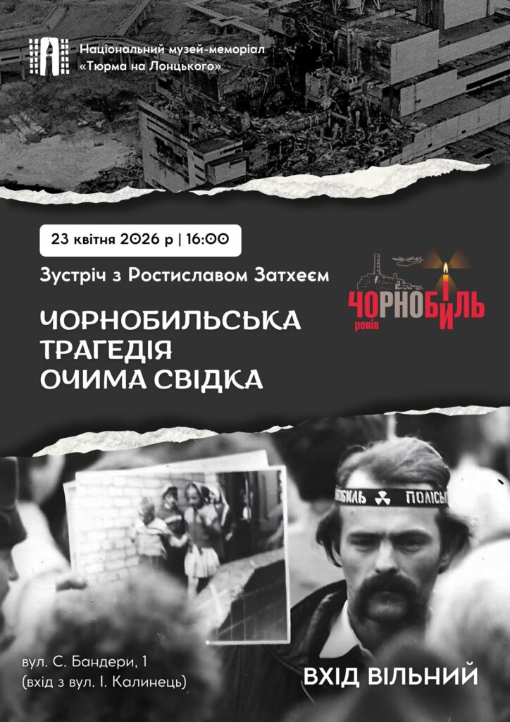 Вшановуючи 40-ві роковини Чорнобильської трагедії, запрошуємо до музею в четвер, 23 квітня, о 16:00, на зустріч із громадським діячем Ростиславом Затхеєм, очевидцем тих подій. Ми побачимо фільм, знятий паном Ростиславом, переглянемо світлини та почуємо спогади, що стали нашою болючою історією.